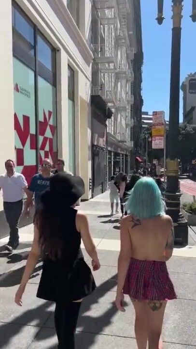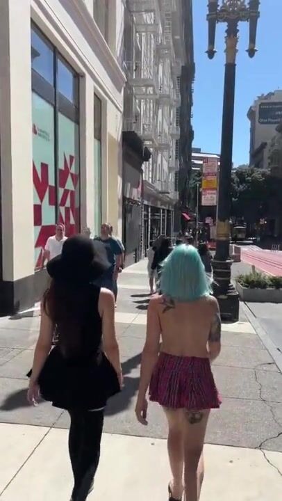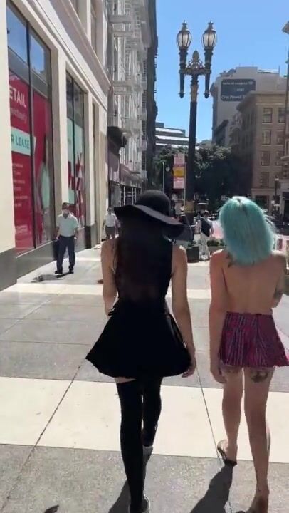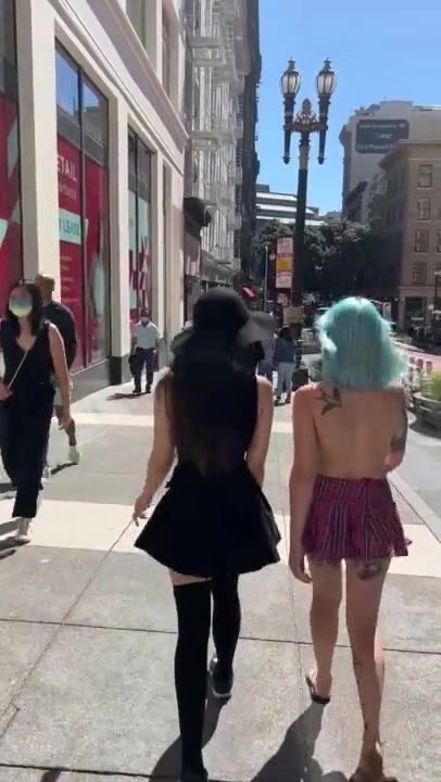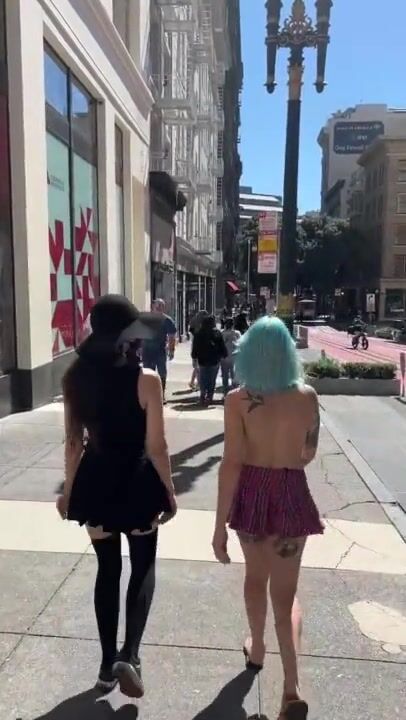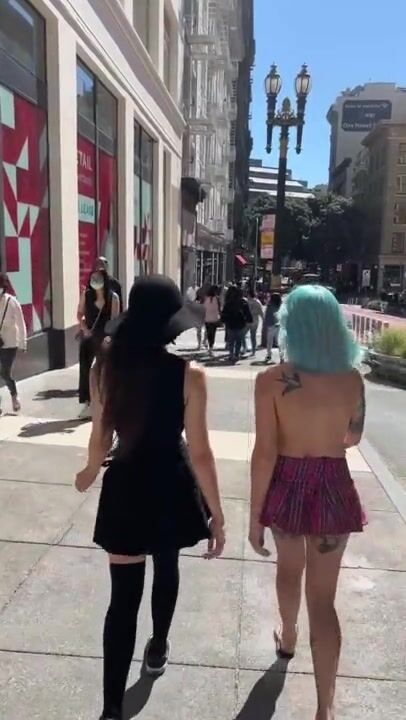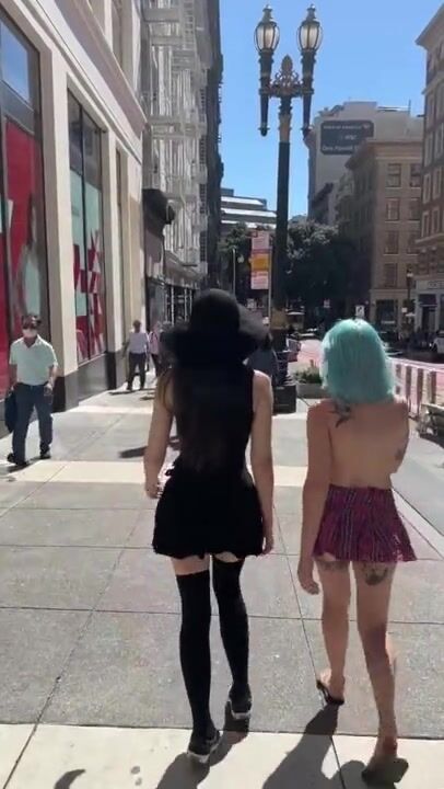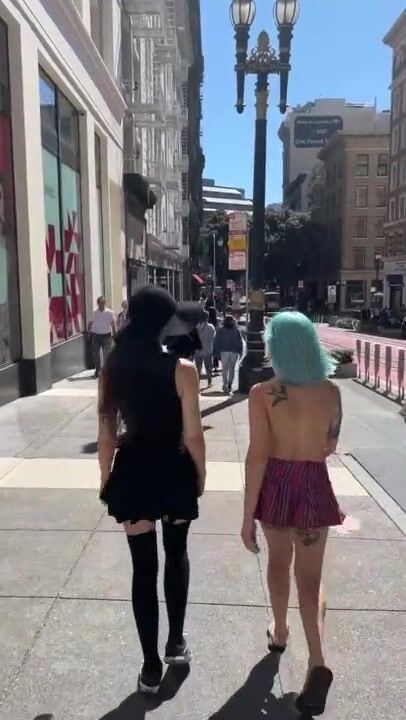 WALKING DOWN A BUSY SIDEWALK TOPLESS WITH LILGLITTERBITCH AND SHYGOTH