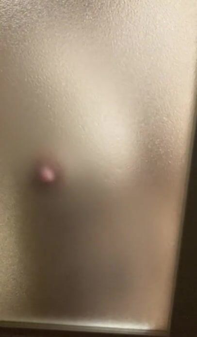 MASTURBATION BY RUBBING HER NIPPLE AGAINST THE WINDOW