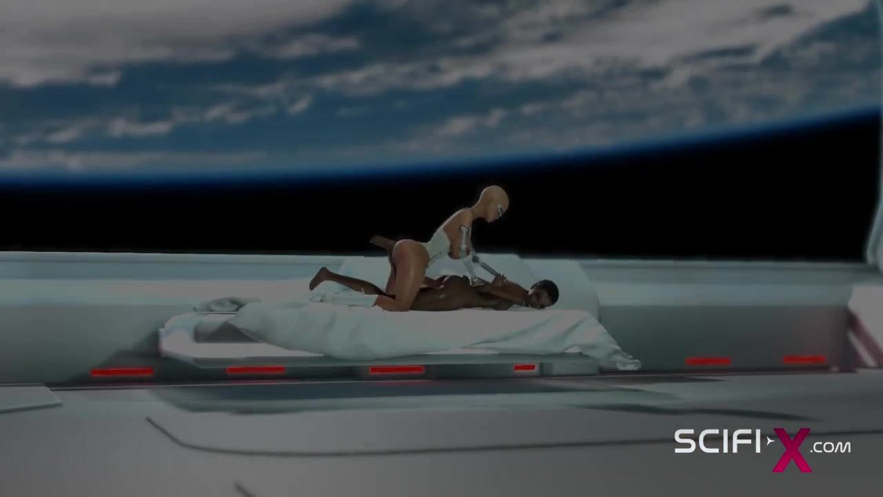 FEMALE SEX ANDROID PLAYS WITH A SEXY EBONY IN THE SPACE STATION