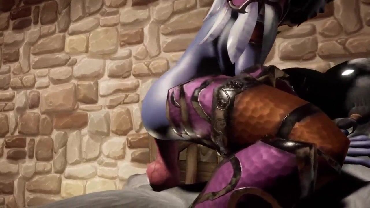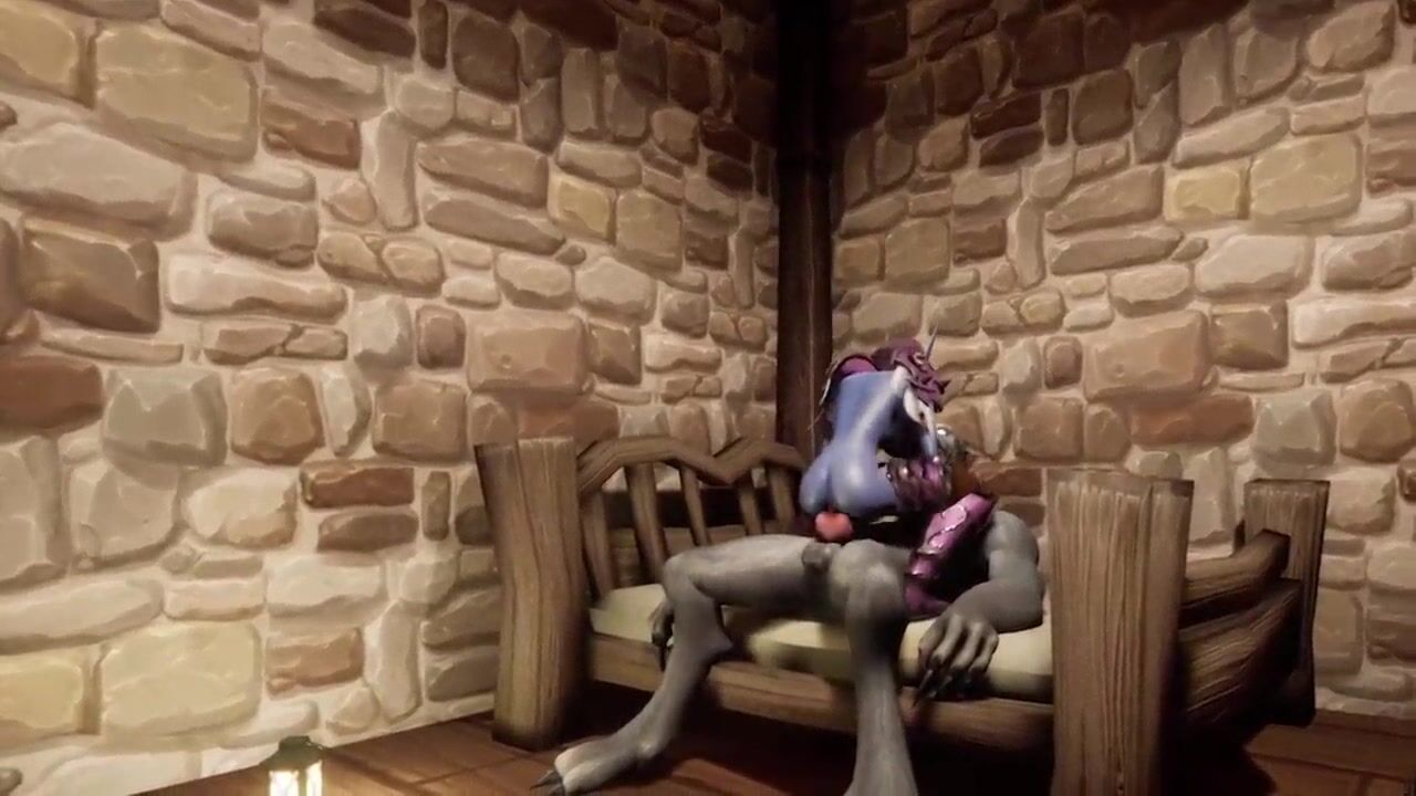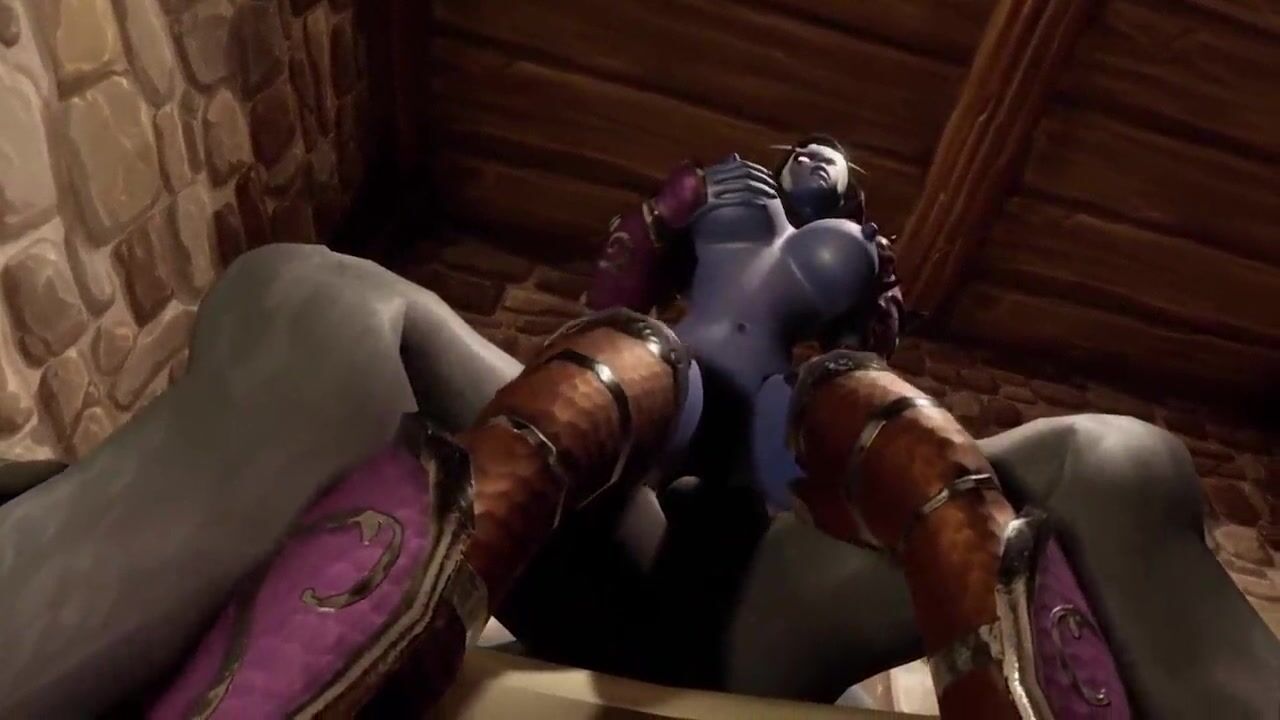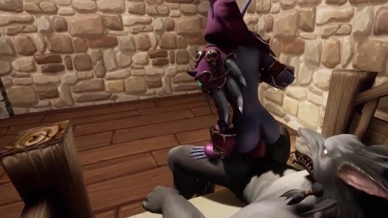 Werewolf fucks Night Elf on a table