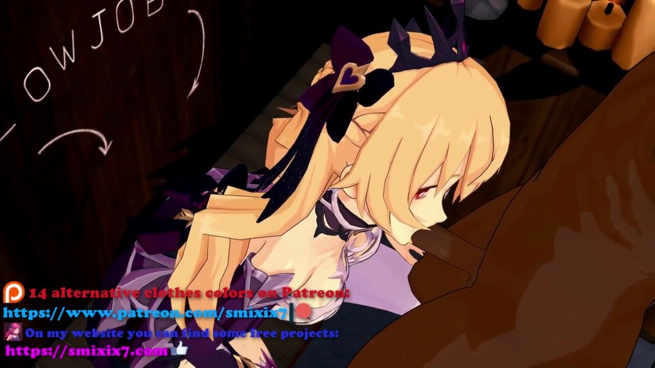 GENSHIN IMPACT FISCHL BLOWJOB HENTAI BLONDE GIRL HALF NAKED MMD 3D DARK BROWN CLOTHES CE SMIXIX