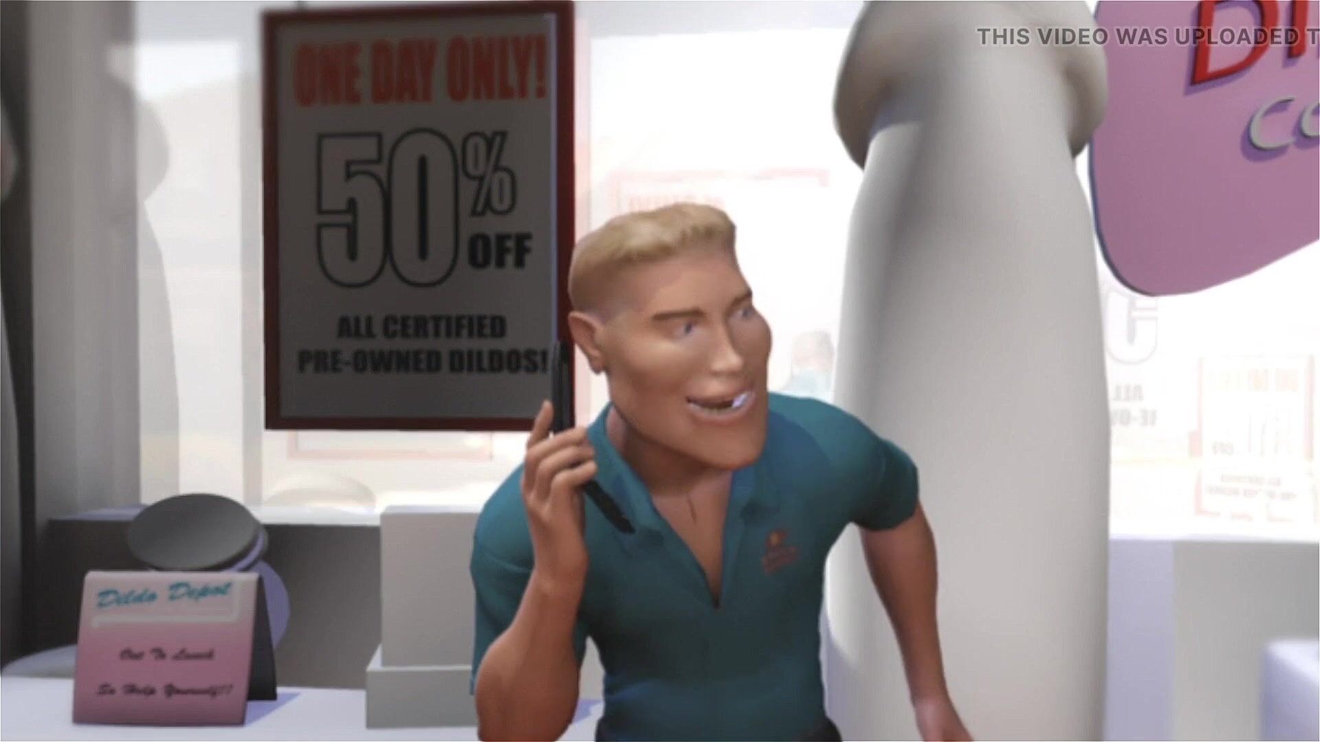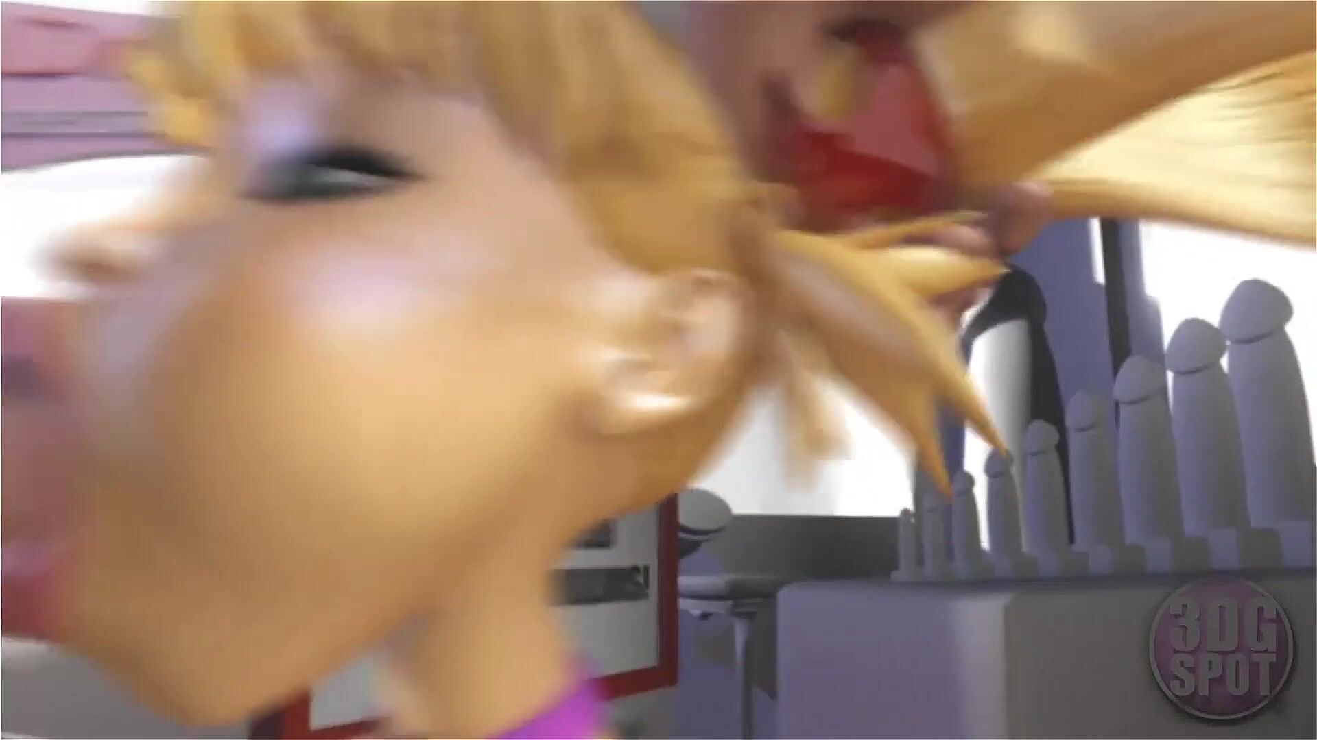 3DGSPOT - BLONDE TEEN DEEPTHROATS AND GAGS A HUGE COCK IN A DILDO SHOP! 3D ANIMATION!