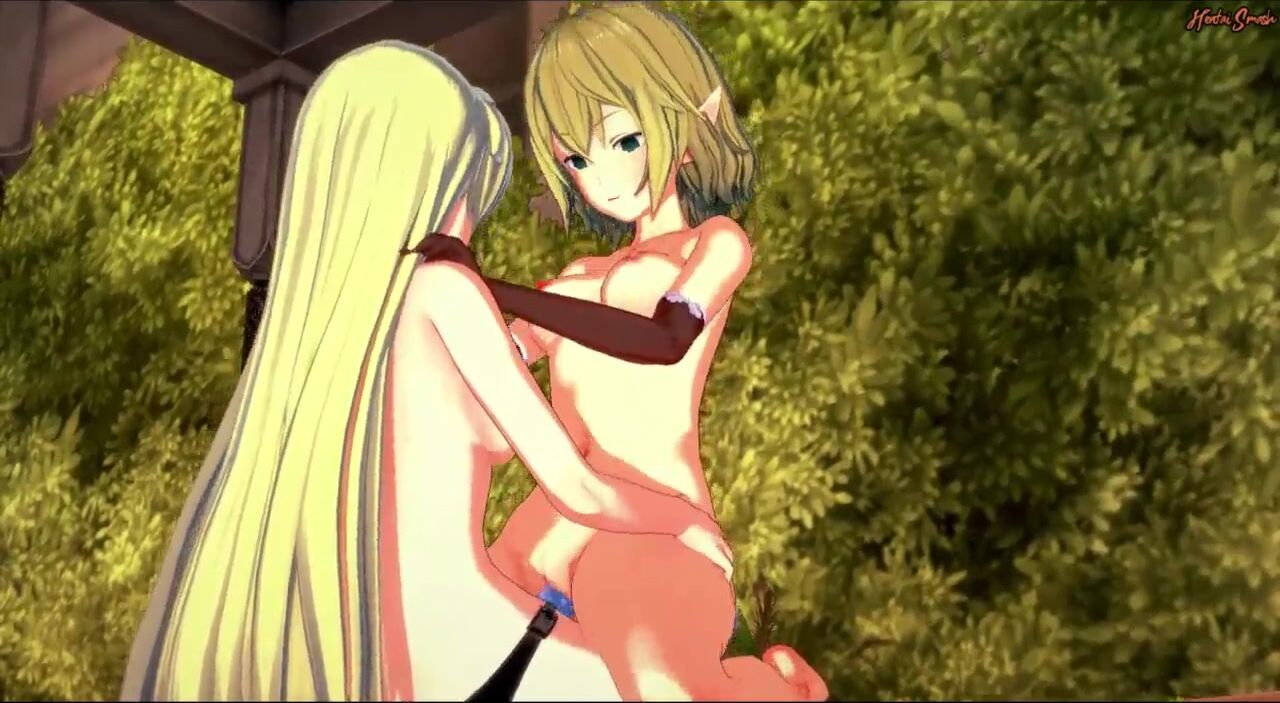 RYUU LION AND AIZ WALLENSTEIN HAVE LESBIAN SEX IN THE GARDEN - DANMACHI HENTAI