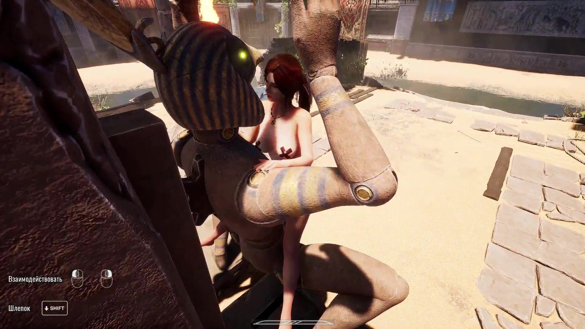 LARA'S HOLES FILLED WITH HOT JIZZ BY THE ANCIENT STATUE IN A 3D HENTAI GAME
