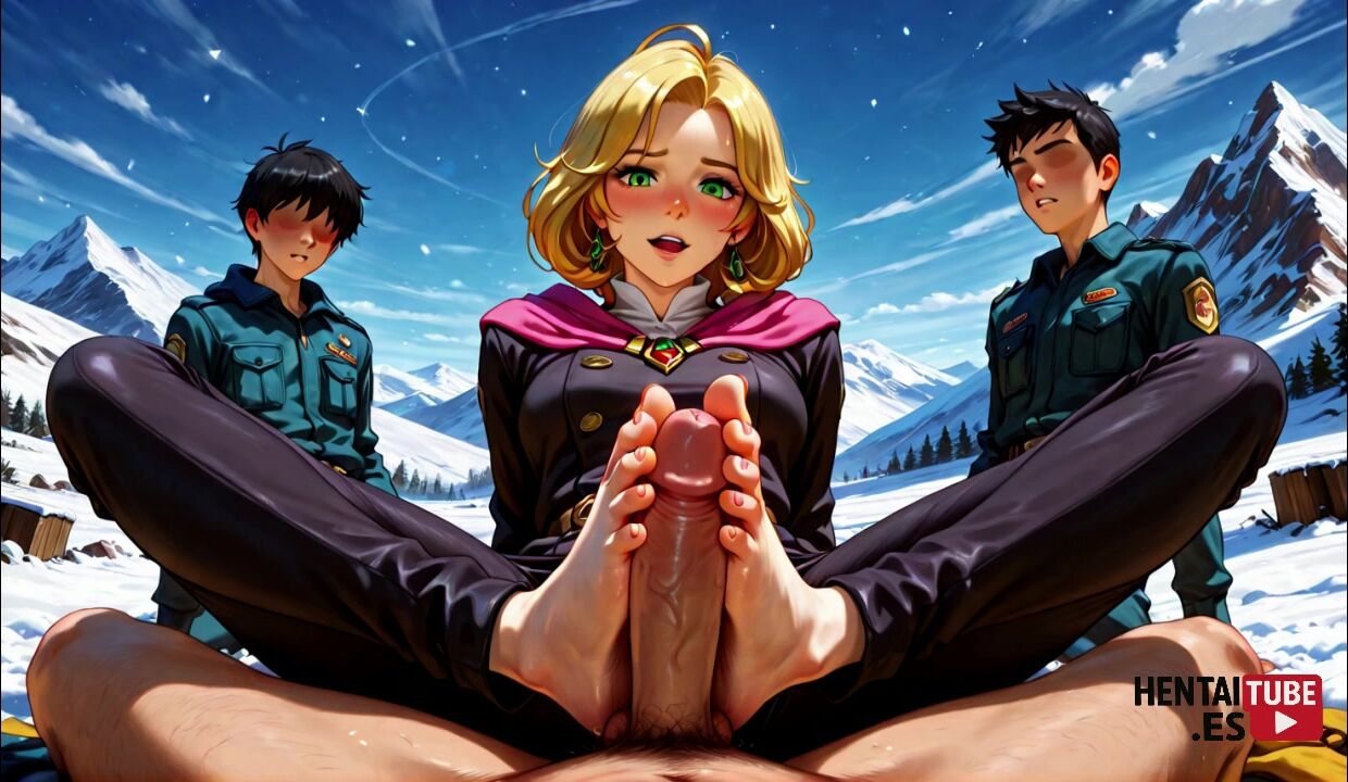 SEXY BLONDE HENTAI ANIME COSPLAY GAMER GIRL GETS SNOWED IN THE ALPS