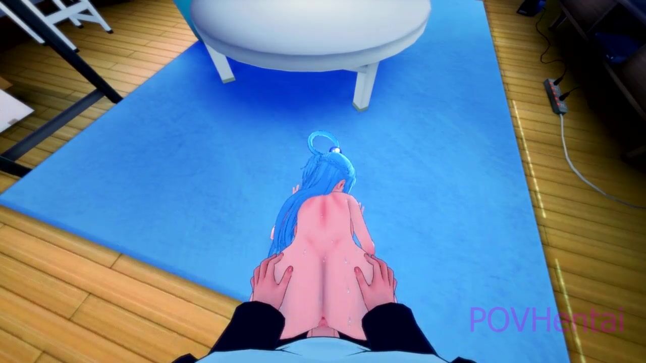 Aqua playing with your cock before riding it - Konosuba POV Hentai.